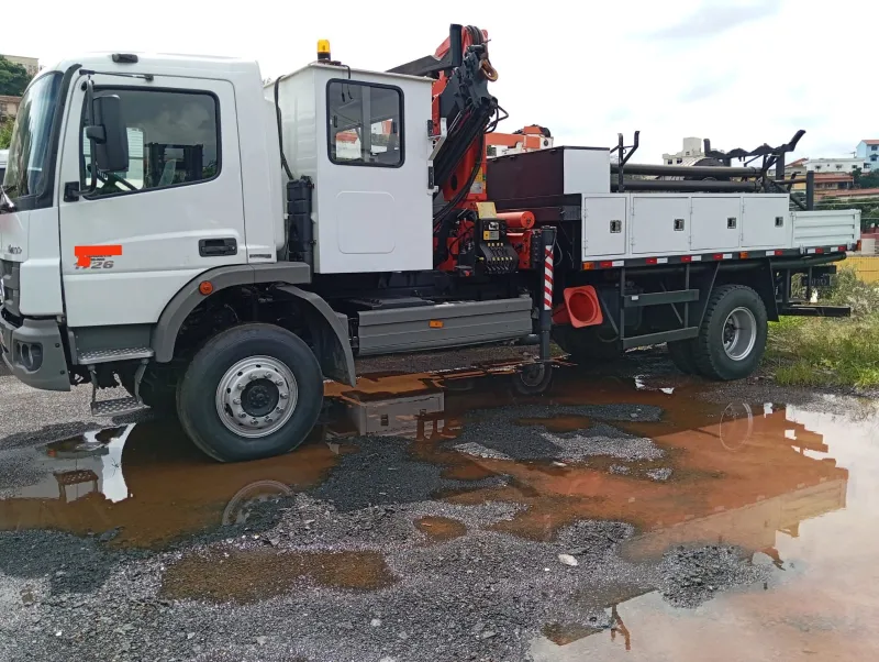 O caminhão munck contribui para segurança operacional, organização do canteiro e agilidade nas atividades de carga e descarga.